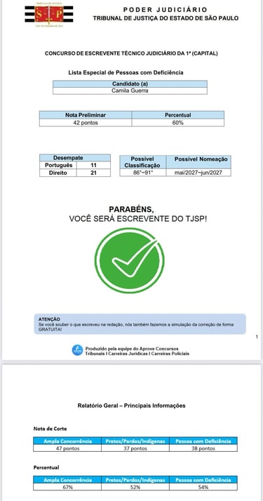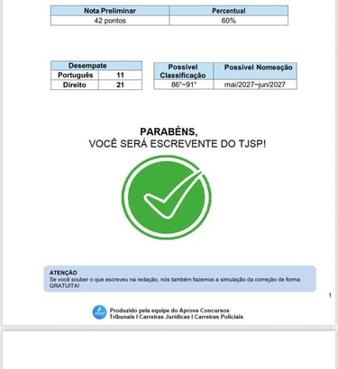 Preencha o Formulário e receba relatório da sua possível classificação e mês da possível nomeação no Concurso de Escrevente do TJ-SP.